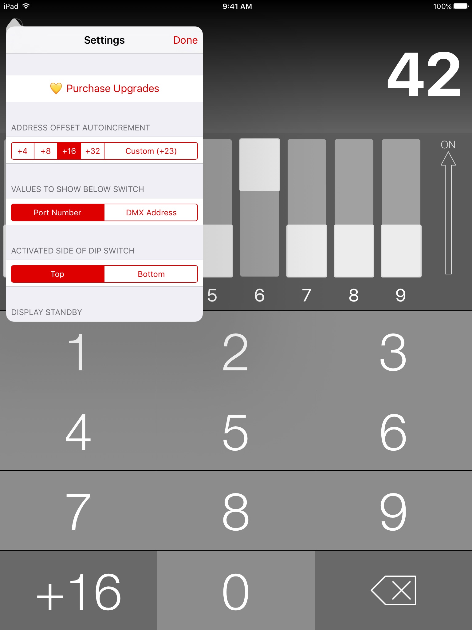The reverse operation is also possible, just use the dip switches in the app like you would use real-life switches, and DMX Dip tells you exactly for which address the fixture is configured.
