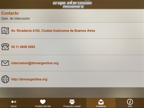 Contacto: medios de contacto del Departamento Nacional de Misiones de Argentina