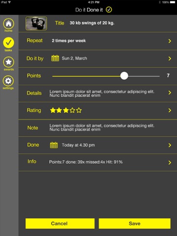 2. Detailed stats are kept for each task which will help you adjust and keep pushing yourself.