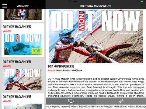 Articles (featuring incredible photographs and videos) are published weekly in plain text and digital reader format. Selected stories are compiled in a monthly digital magazine, which is available on the app and website. In addition to the latest articles, events, and news, the app also provides easy access to DO IT NOWs Facebook and Twitter updates.