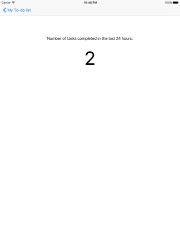 To-Do List App is a simple list manager app allowing the user to add tasks to a list. The user can add an infinite amount of tasks and marked them as completed by simply tapping on them. The completed tasks goes away after 24 hours of being completed. The user can keep track of the amount of completed tasks in the last 24 hours. By swiping right the user can delete a task manually.