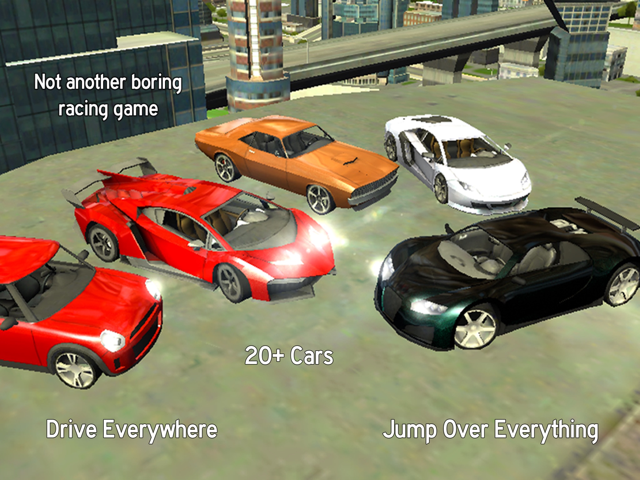 Drive everywhere. Jump over everything. Buildings, bridges, tunnels. Drive up high - very high. 50 stories up in the sky.
