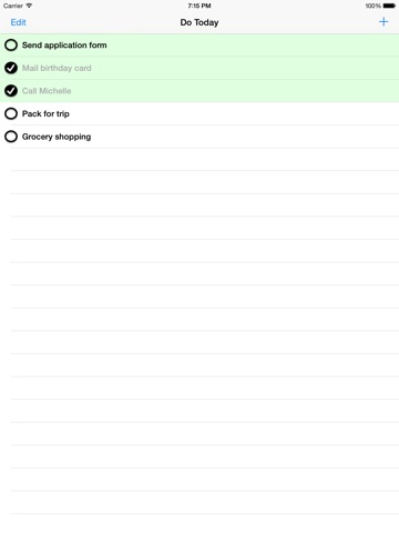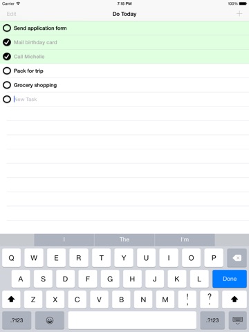 • Edit unchecked task: Tap the tasks words, type changes, tap Done.