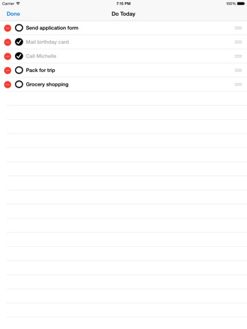 • Easy to use: see what needs to be done, do it, check it off or delete it