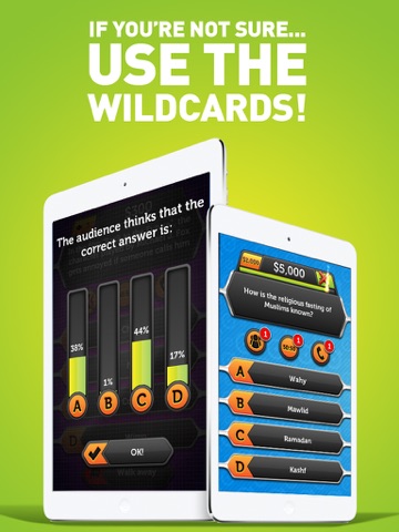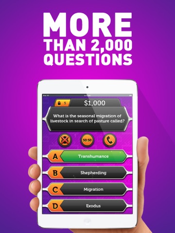 Play Millionaire for free and demonstrate that you are the one that knows more. The quiz contains more than 2000 general questions and two modes where you can test your cultural knowledge.