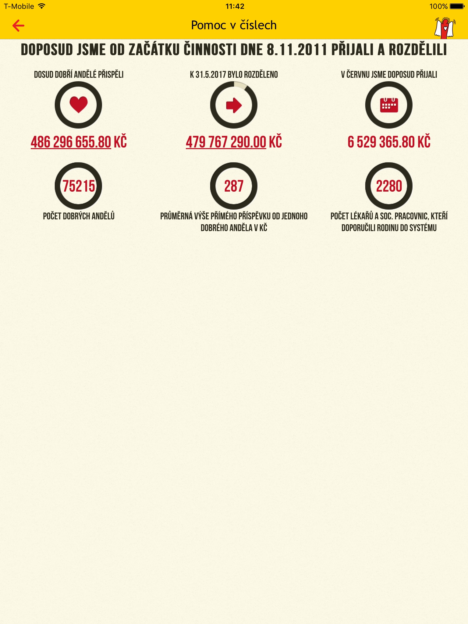 Díky přístupu ke svému Andělskému účtu můžete sledovat, jaké rodině vaše příspěvky pomohly, včetně jejich životního příběhu. Příspěvky odevzdáváme do posledního haléře. Aplikaci Vám přináší T-Mobile, partner nejlepších českých aplikací.