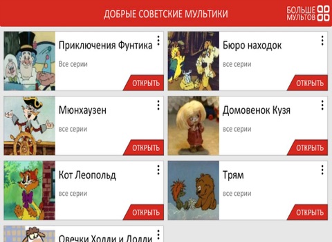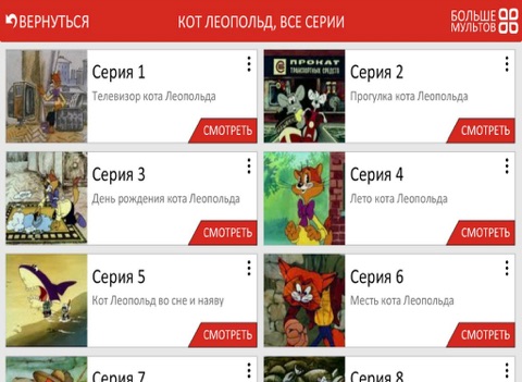 Список доступных мультфильмов: