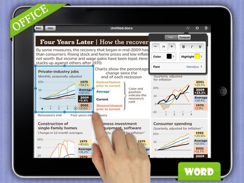 Allows you to create, view and edit Microsoft Office 2007 and 2010 documents on your ios devices.