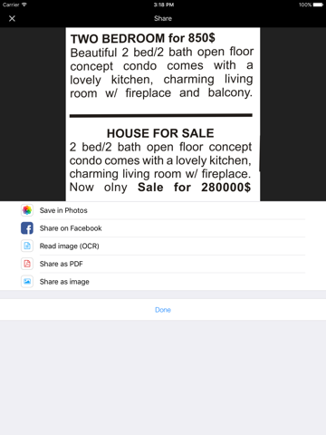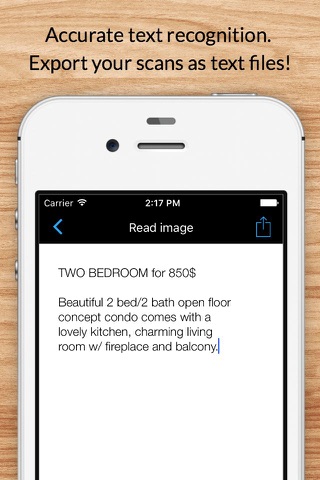 - Save your scanned documents as an image, a text or even as a PDF!
