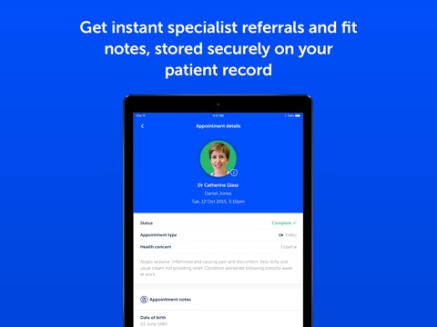 "I’m delighted my days of stuffy waiting rooms are over! I was able to make an appointment really quickly and easily with a doctor who really took the time to answer my questions fully and gave really informed and relevant advice."
