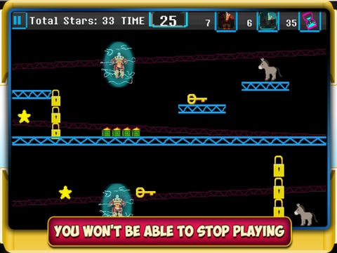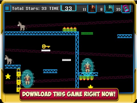 So you have to move strategically, so that you or your copy do not get hit with the hurdles while on your journey to save the donkey.