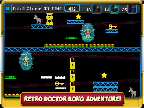 You, the Doctor Kong, are the only hope to save the sick donkey. You have to get to the donkey in time to cure him before he dies. But you must be quick, as you only have a limited amount of time to reach him.