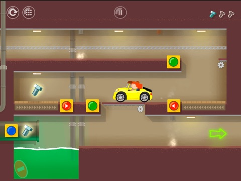 Little clever girl Doctor McWheelie is driving her yellow car. She is in a hurry. Help Dr. McWheelie to pass all obstacles and collect all bolts.