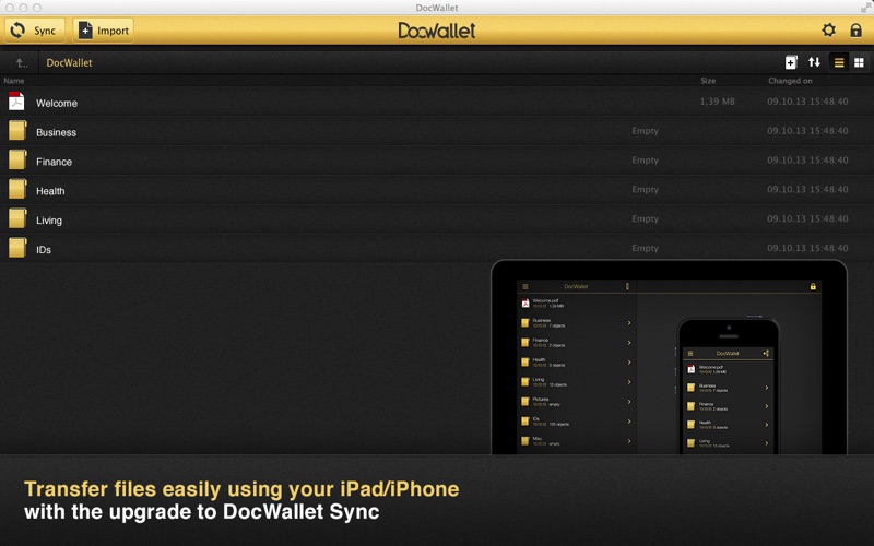 If you purchase an in-app feature from DocWallet for a 12-month term, you can synchronize your documents over multiple devices. This is not a subscription.