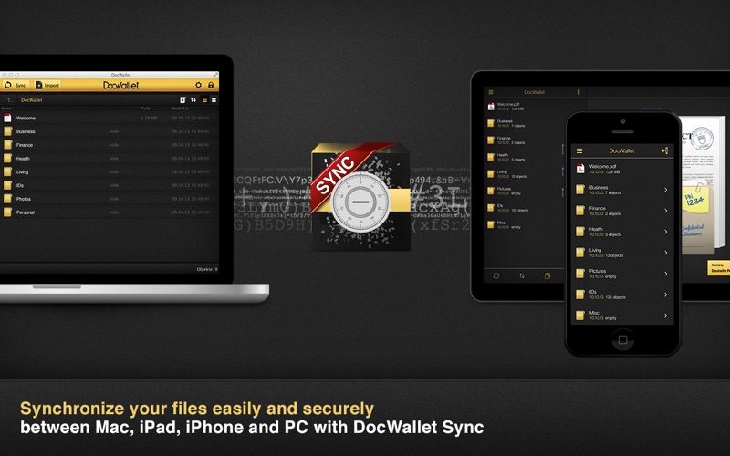 At no point in time is your data visible to others, thanks to high-security, end-to-end encryption. DocWallet enables the confidential transmission and management of critical information - both on the Internet and on a mobile basis. For the first time, those sworn to secrecy, such as physicians, attorneys, politicians and social insurers, who fall under § 203a of the German Criminal Code, get secure mobile use and document exchange on the iPad, Mac and PC. All data are synchronized by a central server at Deutsche Post AG in Germany, to only be used by end devices you have authorized.