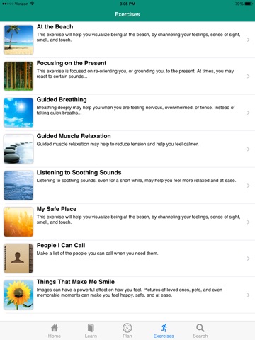 EXERCISE: Use these guided, easy-to-follow techniques to help reduce anxiety and stress that may result from sexual assault. The exercises can be used in private, marked as “favorites” and replayed as often as needed.
