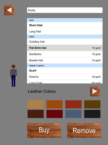 You can customize the appearance of your player. A basic cowboy and cowgirl are provided, but you can create, modify and save your own player with a variety of colors and accessories.