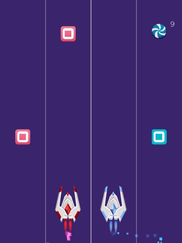 Control ships at the same time. Collect all the candies and avoid the squares in space.