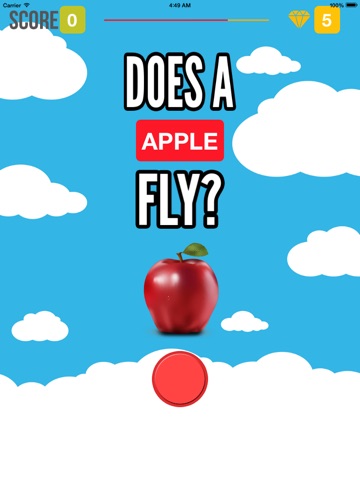 Does it fly is built on a simple memory from childhood. As kids we would play does it fly with friends and family to test our agility, mental acumen and just have a great laugh. You never know what might stomp you and what you might make fly as the game progresses and gets harder you are challenged with new objects and faster speeds. Try it for a bit of fun, memories, laughter or just to become faster and smarter. Does it fly, a game for smiles.