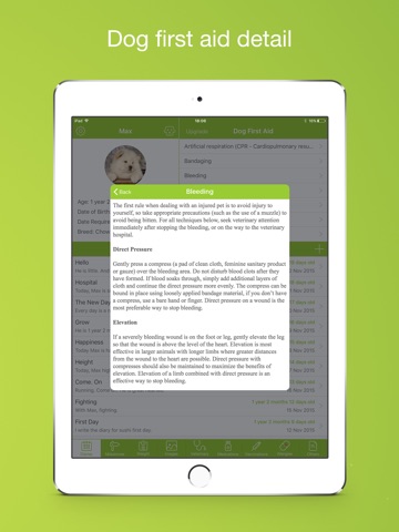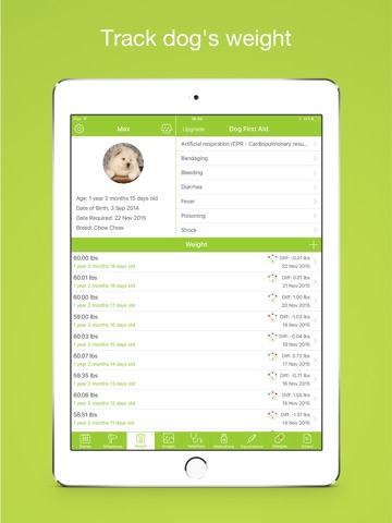 ⁃ Record milestones of your dog, birth, grow new teeth, fall in love etc, and you can also add photo on this module as souvenir.