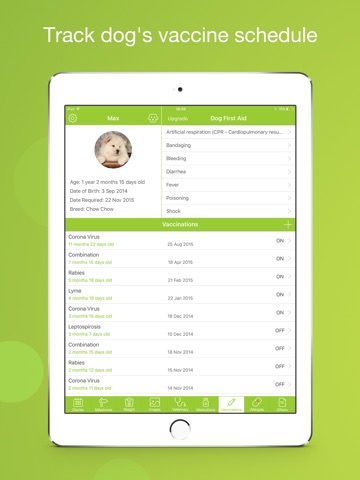 ⁃ Track your dogs’ vaccine info.