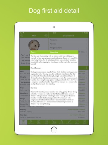 Write diary for my dog, it sounds new and interesting, maybe in this way I can learn more about her. The first aid information is very usefull too.