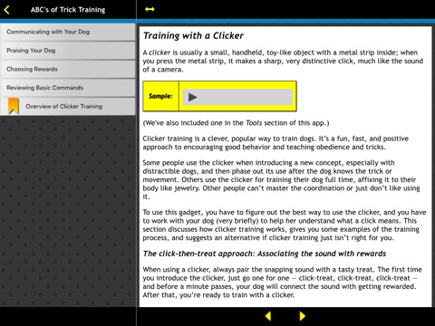 • Basic Tricks - start with the basics with nine tricks that not only build the bond between you and your dog but also teach good doggie manners.