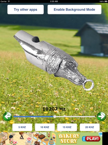 Choose your own whistle frequency to train your dog. App contains frequency: from 100hz to 2000hz. You can also play whistle sound in background mode.