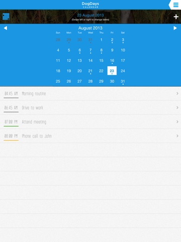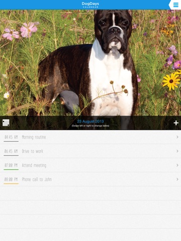DogDays is a fully-functional calendar app featuring the cutest photos of dogs and puppies. Manage your day and your future while enjoying the company of these lovable pooches. Plus, DogDays automatically downloads your appointments from your Google Calendar making your schedule easily accessible and your transition to a new calendar app as easy as barking, ‘wuff wuff.’
