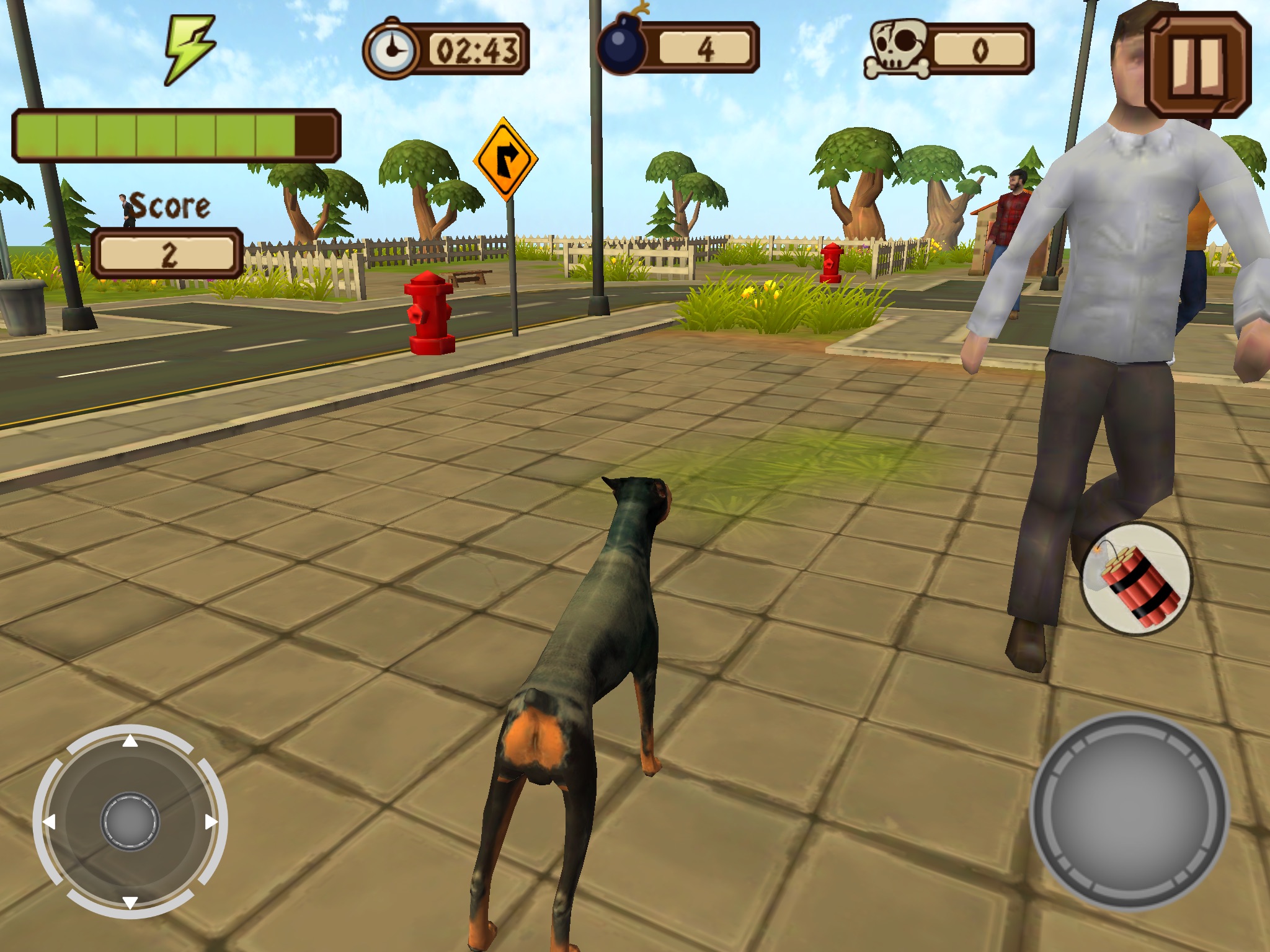Dogs are fun. Who doesnt love them? Cat people I guess. Well, this app is for dog people. Play the Doberman, German Shepherd, or Wolf looking dog. You control the dog as it rampages through the city streets.