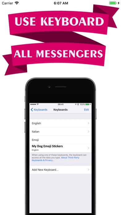 Apple requires all third party keyboard extensions to allow full access. When you do this a very alarming message will appear but do not be alarmed as privacy is our top priority. DogMoji does not collect any personal identifying information or transmit anything you type. Turning on “Allow Full Access” gives the DogMoji keyboard permission to copy and paste the emoji images. You can also choose to send DogMoji content from the app without installing the keyboard, or you can also use the iMessage sticker feature which does not need full access.