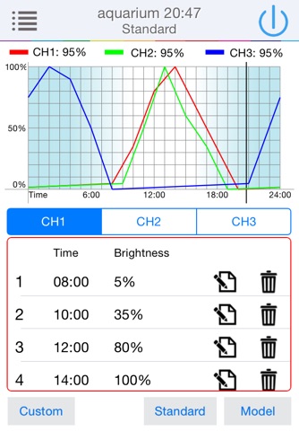 Connect to our WiFi-equipment,you can set up the different modes for your aquarium and tank. , It also can dim the brightness. There have 3 channels so far, You can set up 6 points in each channel, it simulate the real marine environment, simulate the sunrise, sunset etc real ecological environment for seafish , coral , etc.