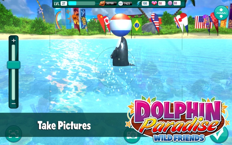Help keep the lagoon clean from jellyfish to earn shells and pearls which can be used to buy dolphins, props, decorations and habitats.