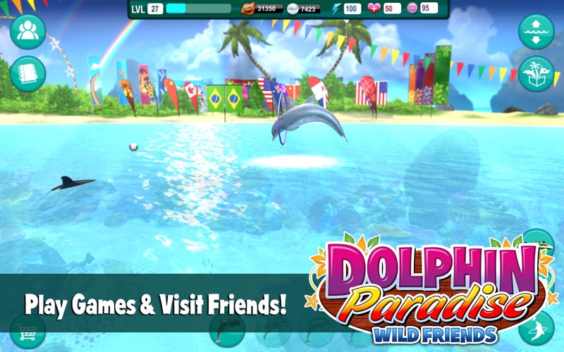 Share photos, Dolphin Show scores and achievements with friends. And visit friend’s lagoons!