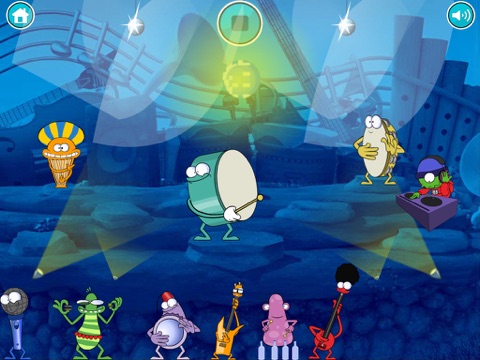 Dom Dom Tak is a music application that enables children to mix different beats and sounds from an arrangement of options in order to create a hit song in a fun and entertaining way. Creating a beat requires choosing from a set of unique cool cartoon characters, each with their own quirky sound or musical rhyme, and arranging them to create a complete song. Each characters rhythm in the song can be added by simply moving them around on-stage for a different order of sound, combining all characters for a choir-like song, different each time you play. This app grants kids opportunity to explore different tunes through experimentation with all the available sounds, beats and rhythms; a game for kids and adults alike!