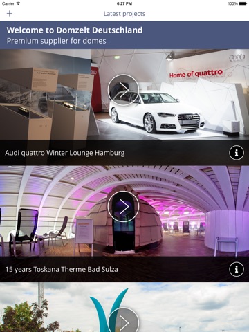 House of Domes · Premium Supplier: Wir schaffen grenzenlos Räume, überall auf der Welt. Die geodäte Struktur sowie das langlebige und flexible Material unserer Domes erlauben dauerhafte mediale Inszenierungen in mobiler Architektur auf hohem Niveau. Diese App zeigt Ihnen unser Leistungsspektrum im 360-Grad-Rundum-Blick, der Ihnen durch den gyroskopischen Video-Player eine neue Wahrnehmung von Bild und Sound ermöglicht.