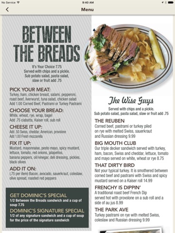 Welcome to the Dominics Deli App. Use our app for directions to each of our location. Try our convenient online food ordering feature and check out our menu to see some of your favorite salads, soups and sandwiches.