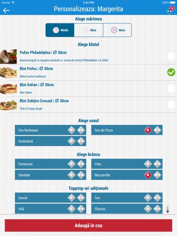 * Fă-ți propria pizza așa cum ți-o dorești! Selectează o varietate larga de blaturi proaspete și toppinguri delicioase