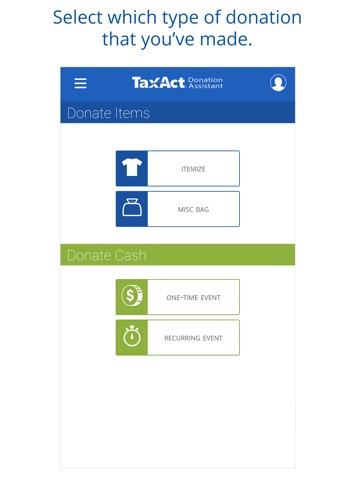 • Save your cash, non-cash and recurring donations to TaxAct’s secure servers (requires Internet access)
