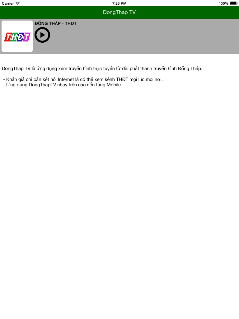 - Ứng dụng DongThap TV chạy trên các nền tảng Mobile.