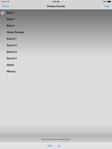 Our apps are easy to use and feature a nice clean interface (see screenshot below). They also include a loop button so you can endlessly loop any of the sounds. We were one of the first development companies for iOS, and we hope you enjoy our applications. People often find this app helpful when searching for things like donkey, donkeys, iDonkey, iDonkeys, donkey kong, donkey sounds, donkey noises, and donkey calls.