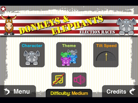 In Donkeys and Elephants: Election Races, you tilt to control either a donkey or an elephant throught the environment to collect as many stars as you can before stumbling onto swords or challenging obstacles.