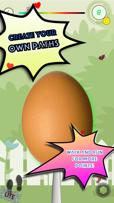 The pedometer calculates steps and distance based on how the phone moves, since playing the game requires handling the phone carefully you might need to step harder but without letting the egg fall!