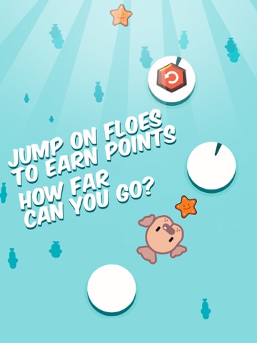 Jump on floes, collect stars and buy new seals! Remember not to stand on a one floe too long- there is a hungry killer whale living in water! Dont get eaten by it!