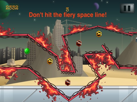 Guide your glowing ball of light through the maze of fiery lines in Space. Touch the line and the ball explodes. Danger is all around and your fast reflexes are needed to guide the ball through the maze.