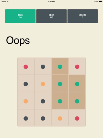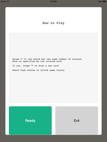 Swipe right if the board has the same number of colored dots as specified by the colored word.
