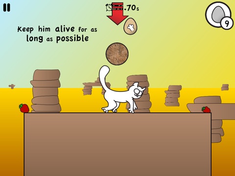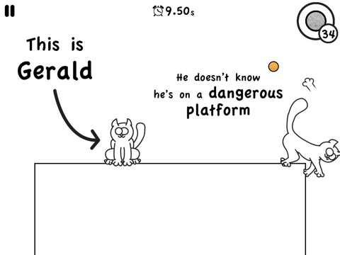 Gerald is a Blind Cat that doesnt know hes on a dangerous platform. Keep him alive by feeding him food.