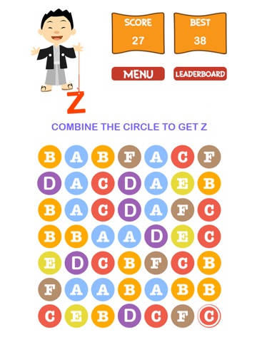 Click the circle with same letter, and they will pop up. Click again to merge them together. Enjoy it and try to get Z