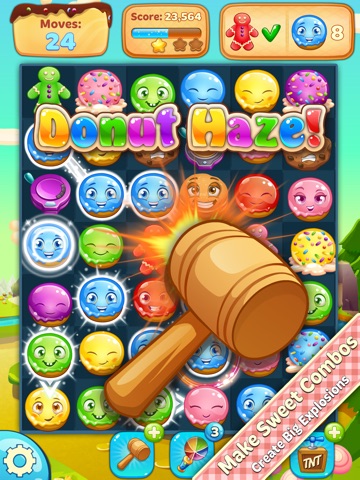 Help the Happy and Delicious Donuts save their world from the polluting, evil Ovens. Use your Match-3 skills to pop, burst and explode any obstacles in your way. The evil Ovens think the tiny Donuts have no chance against them. Little do they know that with you on their side, it is the Ovens who stand no chance. Take up the fight and help the Donuts make their world sweet and peaceful once more. Will you dip into the Donut world today?