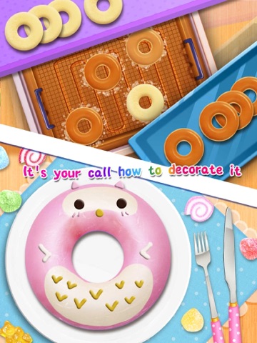 Click Play to enter this game, now let’s begin to make your own donuts! Original, chocolate or fruits? Choose your favorite flavor then mix the ingredients together in the bowl. Then, we should stretch the dough with the rolling pin and drag the mold onto it. Now we get the shapes and need to put them in the oven. Please pay attention to the timer, you would not like to burn your doughnuts. Finally, they are well baked, but it’s not done yet. We still need to decorate to make them more delicious and beautiful. Candy, cream and sprinkles, you can choose whatever you want to complete your wonderful works. Then, you may want to share it with your parents or friends, what’s more, you can also submit the picture to join our weekly show! Other fans will give you Likes and wish you can get a good ranking!